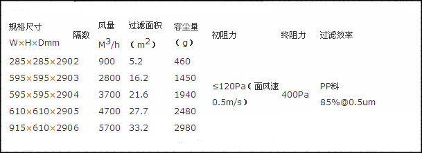 組合式中效過濾器規(guī)格尺寸及標(biāo)準(zhǔn)技術(shù)參數(shù):