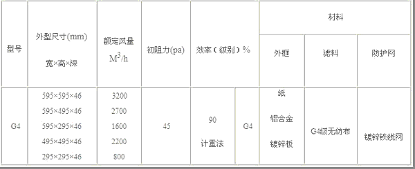 板式初效過濾器過濾效率級別有:G1、G2、G3、G4(EN779)。