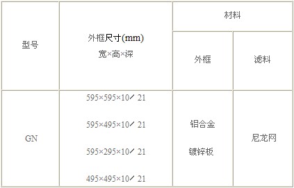 GN尼龍網初效過濾器技術參數