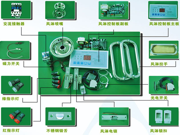 手動門貨淋室的兩道貨淋室門電子互鎖,可以兼起氣閘室的作用,防未被凈化的空氣進入潔凈室,達到有效的凈化效果,經無隔板高效過濾器過濾后的潔凈氣流由可旋轉噴嘴從各個方向噴射至物體表面,有效而迅速清除塵埃粒子,帶有塵埃粒子的空氣再由初、高效過濾器過濾后重新循環到風淋區域。