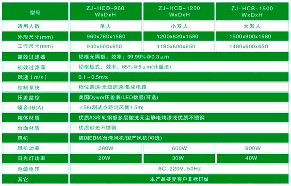 用戶選購指南-垂直流超凈工作臺技術參數: